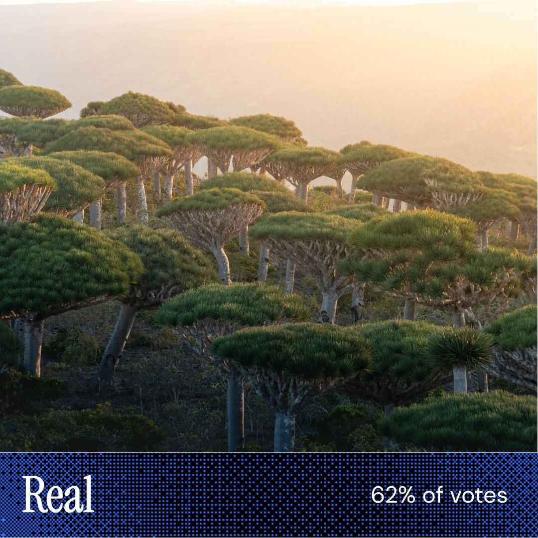 “The base of the bark didnt seem real and consistent in the AI image” “Biome characteristics more consistent with the flora species shown.” “The dragon blood trees only grow on Socotra (Yemen), which does not have high, rugged mountains like depicted in the background on the fake image. ”  |