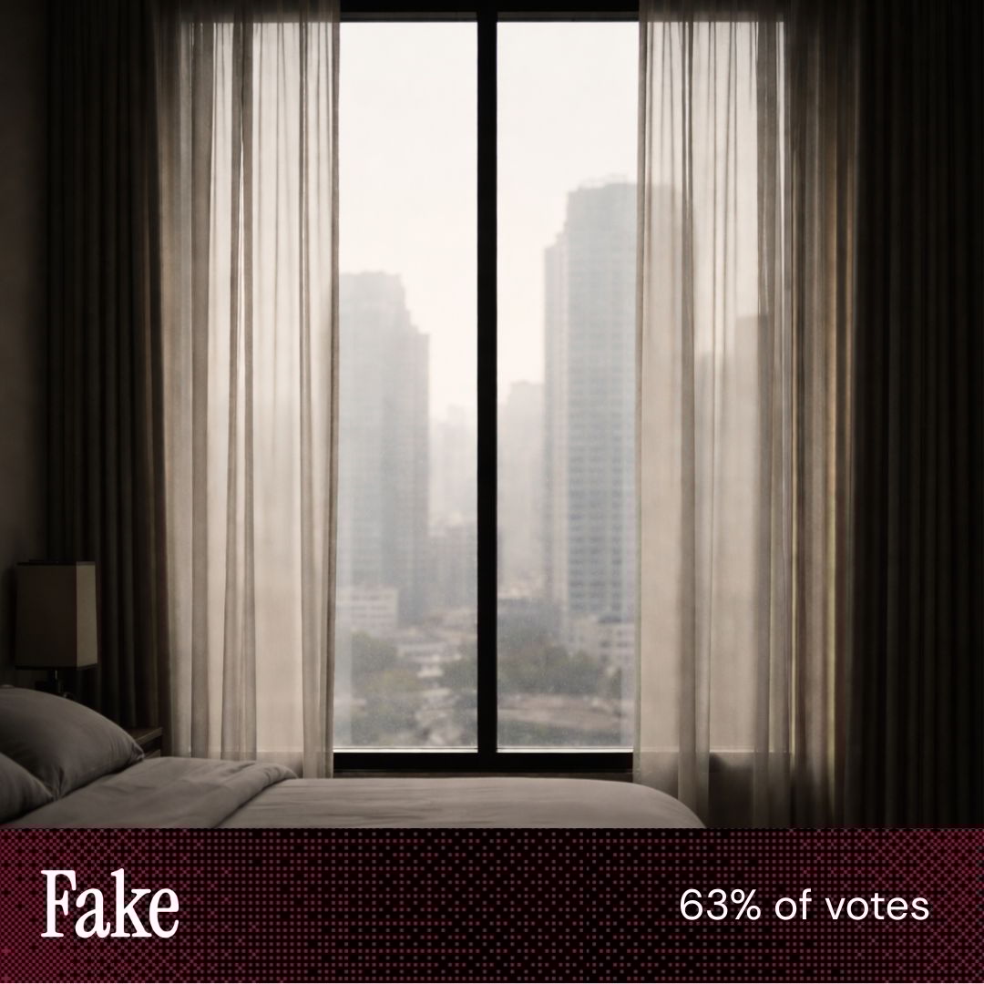 “Reflection at bottom of the other image's window was strange and in this image, the extension sticks to open/close inner curtain maybe something AI would miss.” |