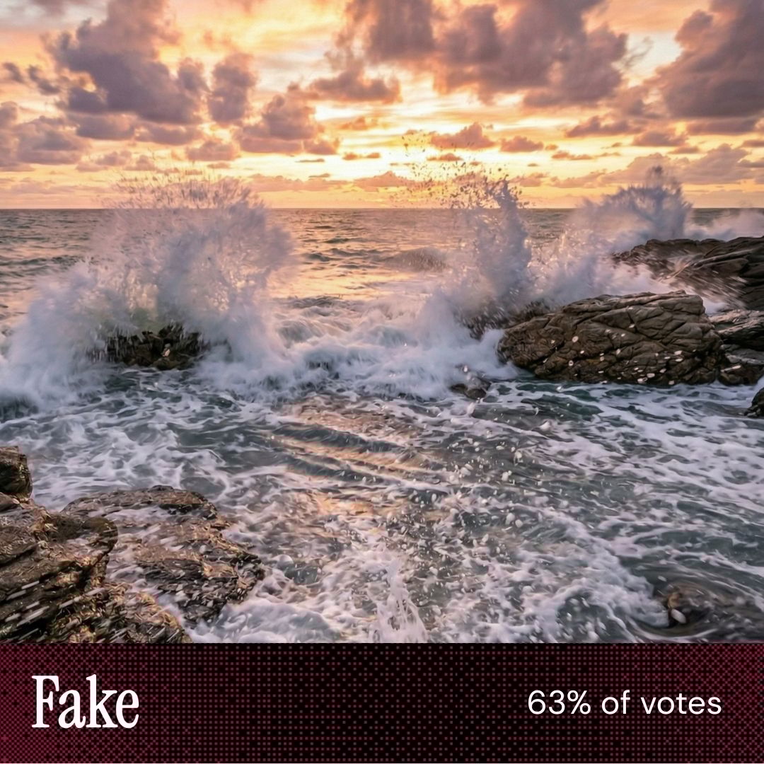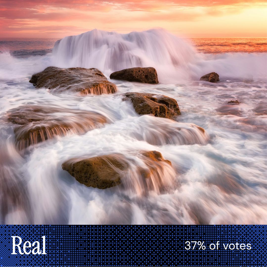 “The rocks and water look lifelike and the horizon looks normal” “I thought the clouds looked real” “[This image] appeared much clearer, crisper” |