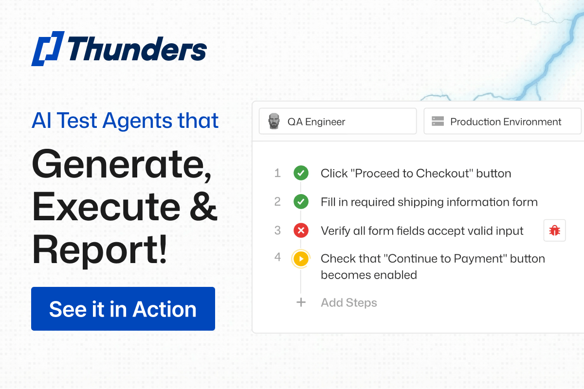 What's that mean for your product team? They can focus on delivering features with confidence, while Thunders' AI handles the complexity of translating high-level intent into comprehensive, adaptable tests, reducing operational overhead and accelerating time-to-market.