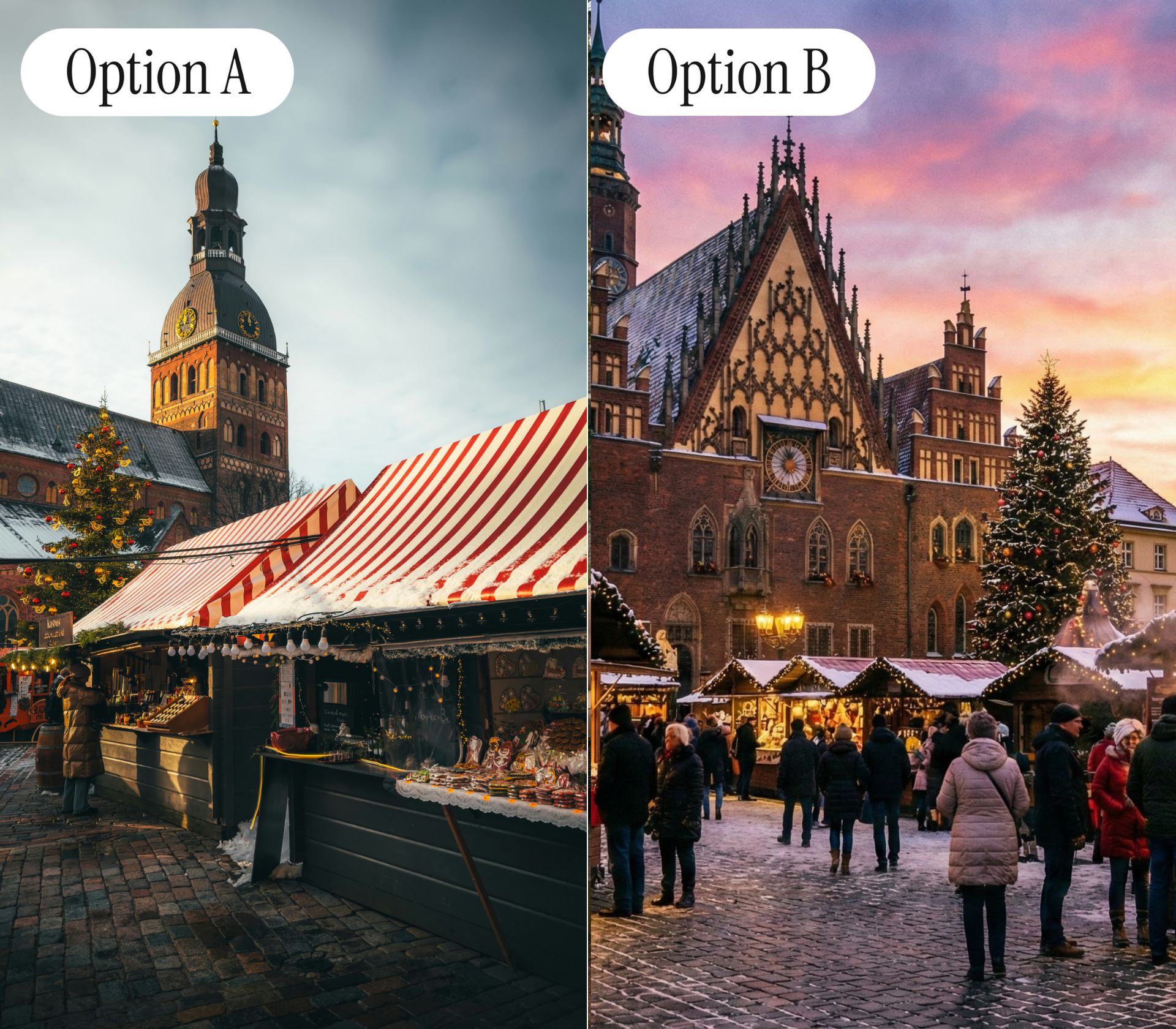 “No snow under the car. It looks as it should.” “License plate was the tell.” “The unusual pattern on the windows and the perfect lighting of [the other image] suggest fake to me.” |