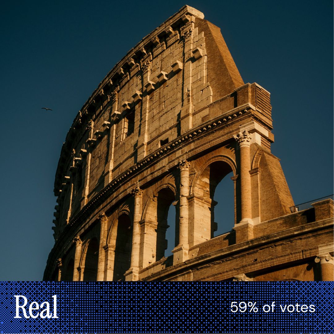 “Can see different color repair blocks in [this] photo.” “The steps/supports in [this image] seemed like the kind of thing that centuries-after-the-fact architects might have done to reinforce old buildings.” “The shadows within the archways looked more realistic, not something AI would throw in.” |