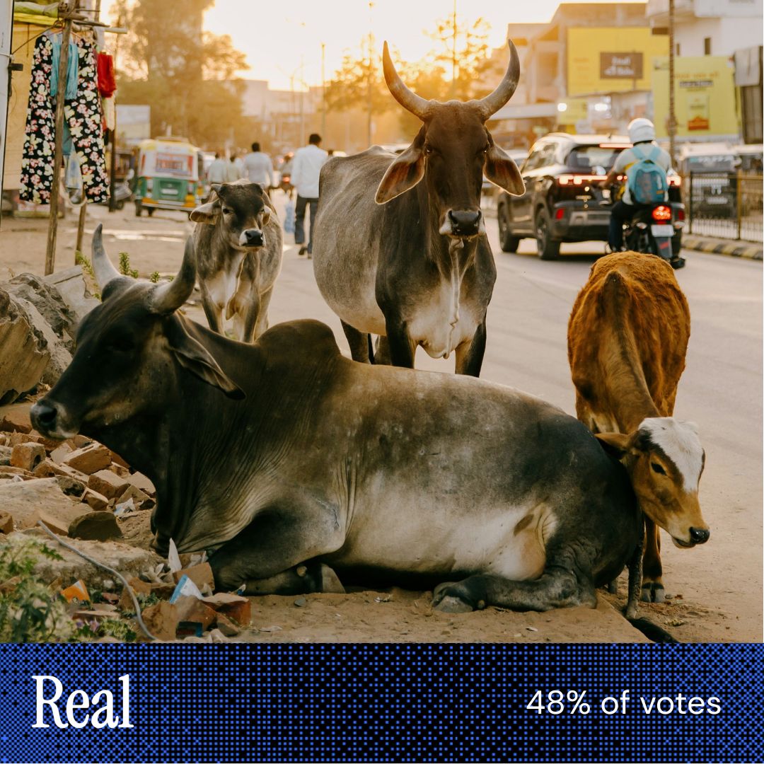 “Haziness in upper background and a different coloration. Plus, it looked dirtier. I've been to those types of locations and this looked more like ones I had seen all over the world!” “The animals had more scars and details that make them unique rather than idealized.” “AI would never make such a haphazard composition.” |