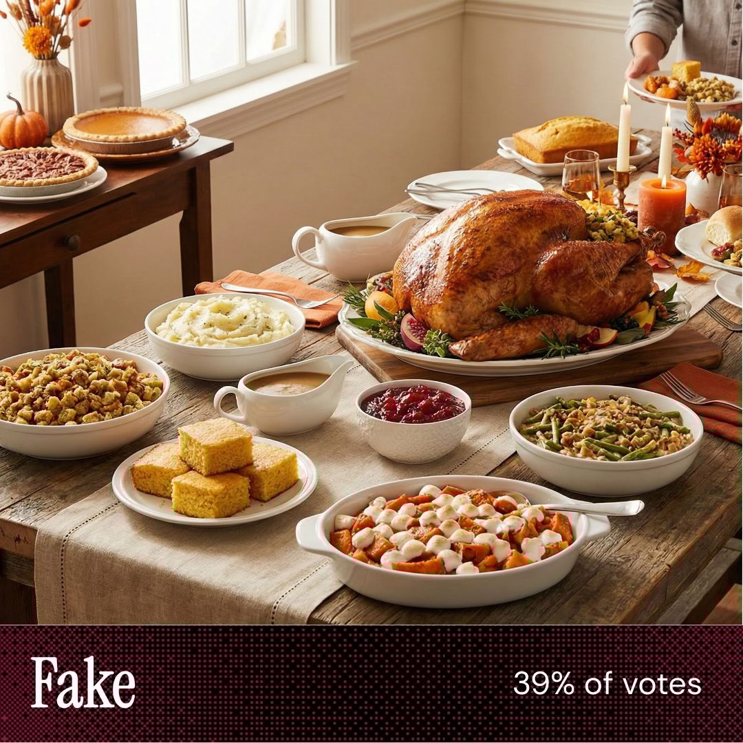 “Whoa! The turkey in the real one just didn't look right!” “The candied sweet potatoes looked more real.” “This was a pure guess. Couldn’t see any obvious faults in either of them.” |