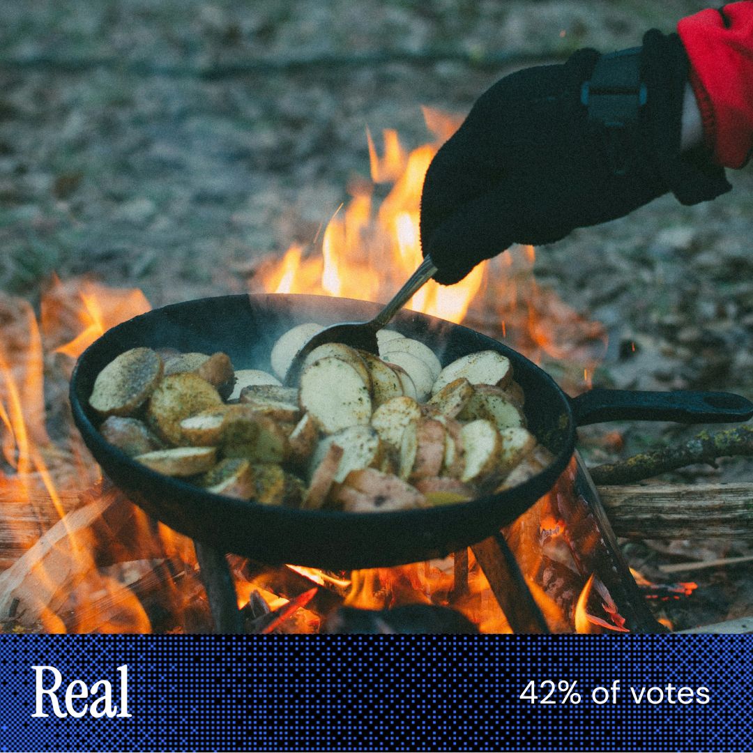 “The utensil had an odd crease/bend to it in [this] photo. The fire was [also] built without anything to contain it or any separation from burnable leaves, pine needles, etc.” |