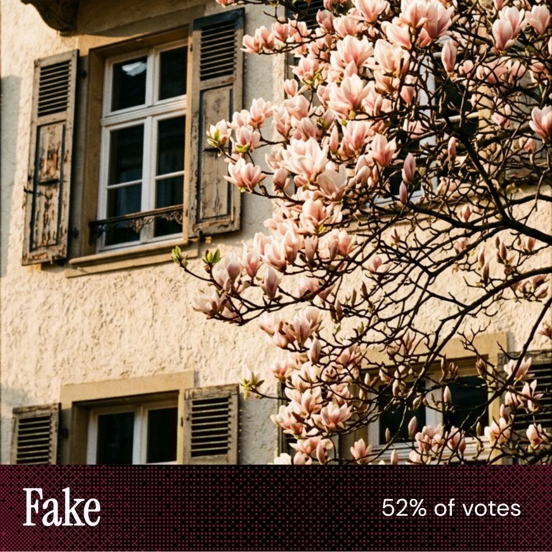 “The dead give away was the Victorian style iron lattice across the lower part of the middle window. That just doesn't belong there.” “The wall in [this image] has the normal imperfection that buildings usually have due to weather conditions.” |